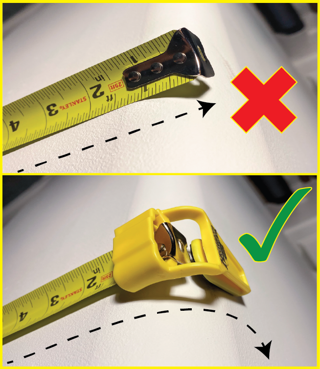 Extend the reach of your tape measure to accurately measure round edges, pipes, columns, and other curved surfaces